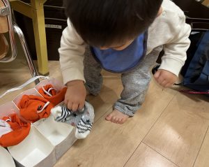 1歳児さんは服の脱ぎ着が自分で出来るように…!!