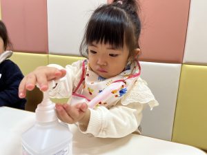 最近では遊びの中でも消毒に見立てて遊ぶのがブームな子どもたちです?
