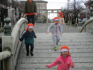 それでも「外に行きたい!」との子どもたちの気持ちに応えて近くの参道へしゅっぱ〜つ!✊