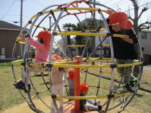 いつの間にかみんなが集まってきて、遊具の中は満員!