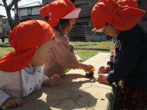 園で育てているちゅうりっぷが咲かないかと毎日観察したり。