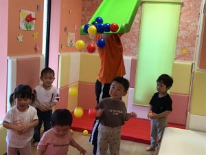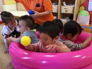 いちご組のお友だちは、ボールプールに入ってご機嫌
