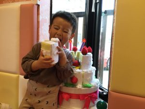 みんなハッピーバースデーの歌を歌ってもらってニコニコ