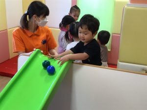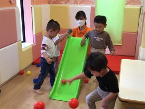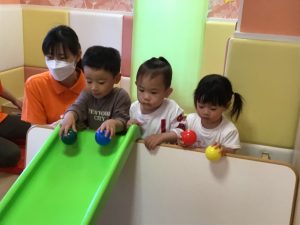 滑り台からボールをコロコロ
