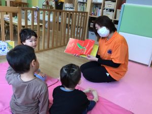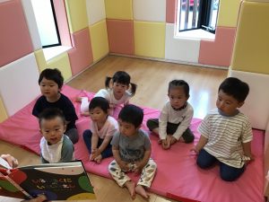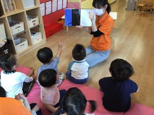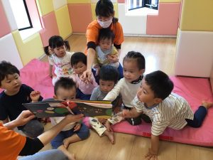 何度も読んでいることで、次に何が出てくるかわかっている子どもたち![]()