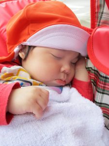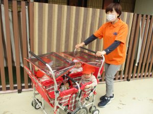 「今日はどこに行くのかな〜?」とワクワクした様子の0歳児さん?