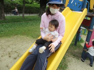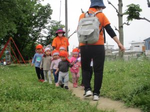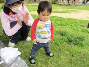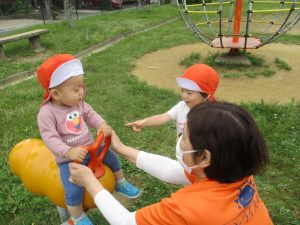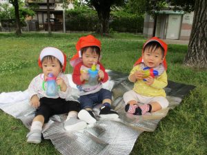 さて、園にすっかり慣れてきた0歳児さんも公園へしゅっぱ~つ!?