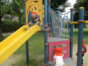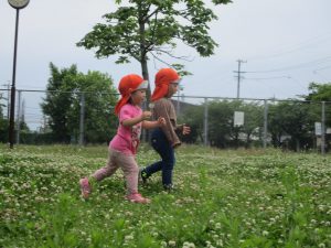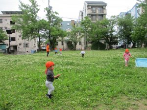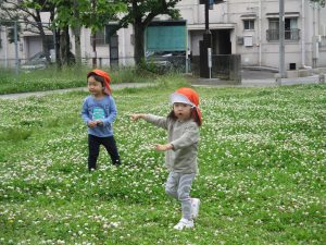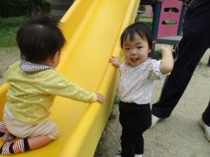 近くの公園に出かけたり、駅に電車を見に行ったりと戸外遊びを大満喫!!?