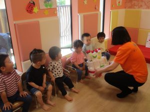 「キャベツの中から」の手遊びをした後は…