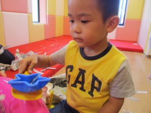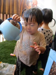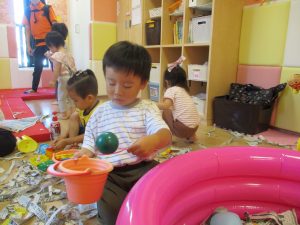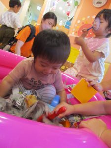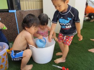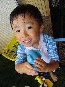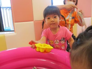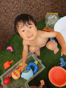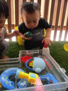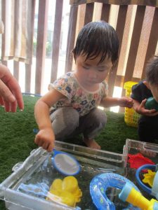 いざ水遊びが始まると好きなおもちゃを探したり、