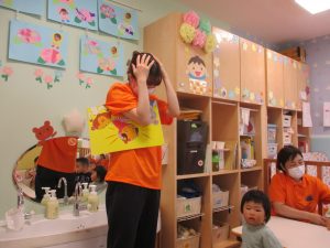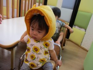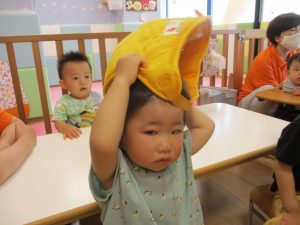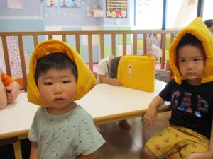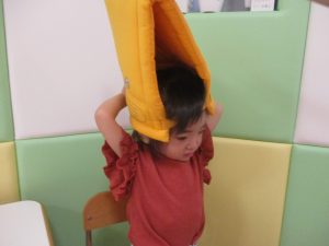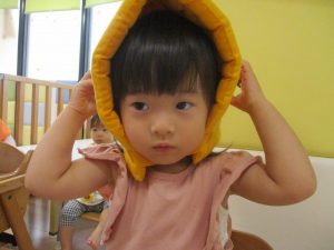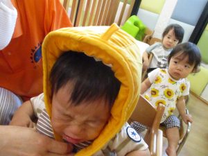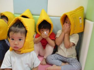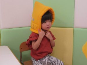 みんなで防災頭巾を被る練習もしてみましたよ⛑