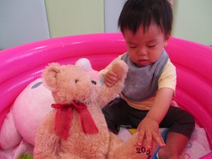 「ほほほほほ」などの5音の言葉や「おふろに はいろ」の繰り返される言葉に、