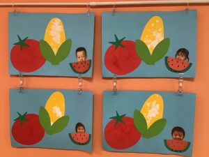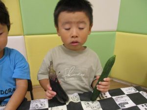 保育者が色んな野菜を子ども達の前に並べると口々に野菜の名前を言ったり、