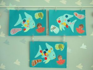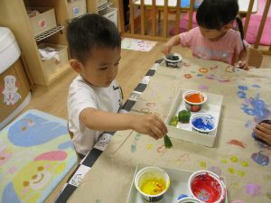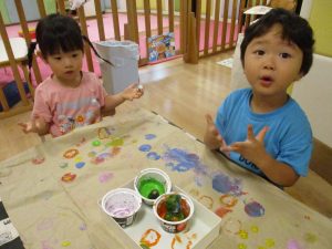 絵の具も両手を使って一生懸命ペタペタしていましたよ![]()