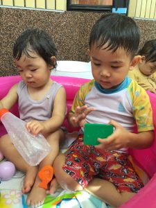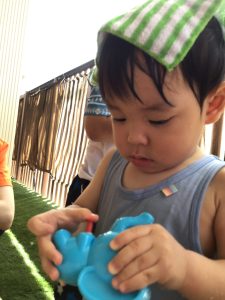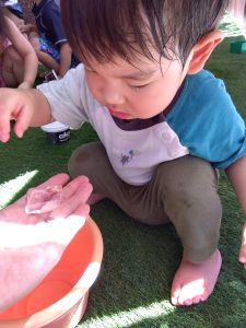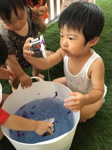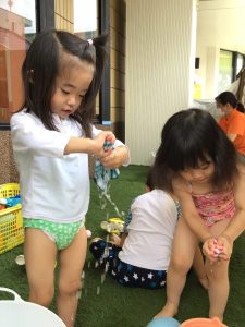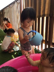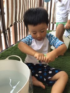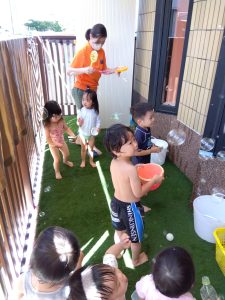 どの子も水遊びの準備が出来ると嬉しそうな表情を見せてくれるようになりました