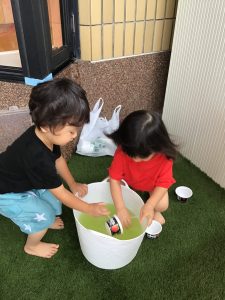 まだまだ園庭遊びを工夫して「夏」を満喫したいと思いますっ( ◠‿◠ )