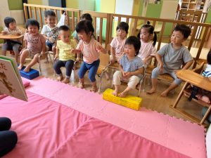 当てっこが大好きな子どもたちは、考えたり声を出して正解を当てようとしたりと