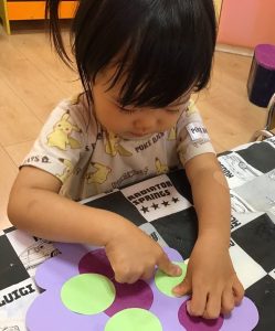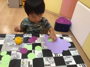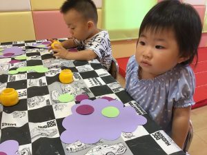 1歳児さんは食欲の秋らしく、糊を使ったぶどう作りに初挑戦✊✨