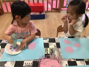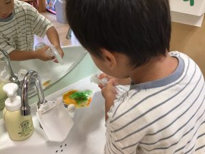 糊の感触に慣れず、固まってしまう子もいましたが、