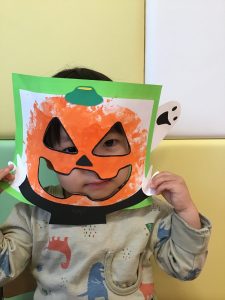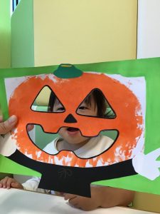 最後はかぼちゃの仮面を被って「はいポーズ