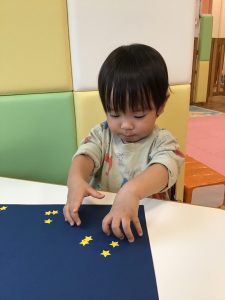 こんなに小さなお星さまも指先を上手に使い貼れるようになりました✨