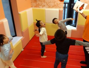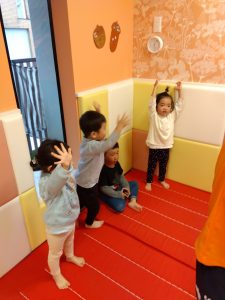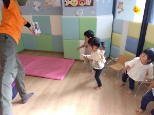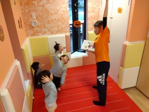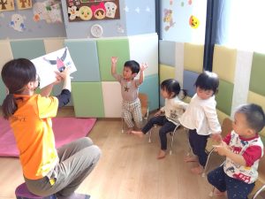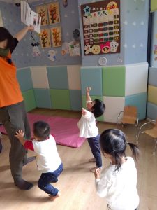 「1、2、3 はい!手を上げて〜」