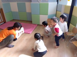 「1、2、3 はい!小さくなって…」