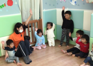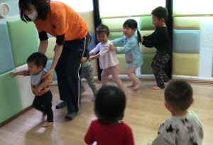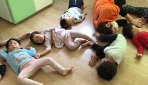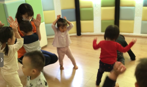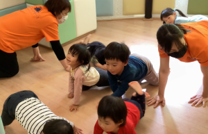 リトミック中は、音楽に合わせて想像力豊かに自己表現を楽しんでいる子どもたち☺