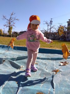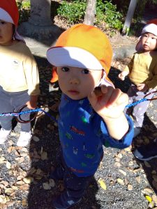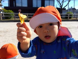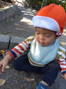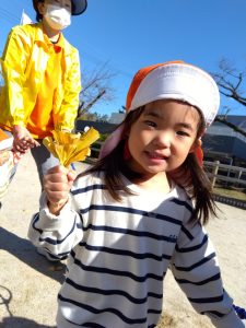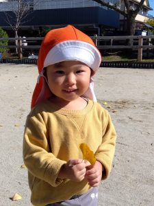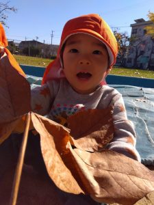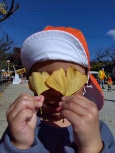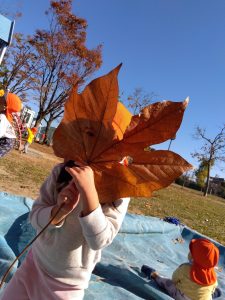 別の日には、大きな落ち葉を見つけた子どもたち🧒