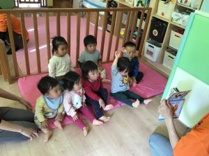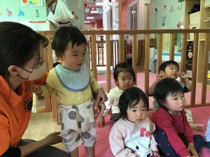 保育者と一緒に、