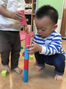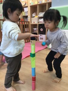 バランス感覚や集中力が鍛えられるからこそ、積み木遊びでもこの集中の良さ![]()
