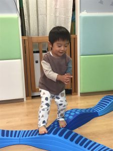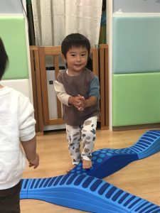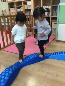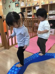 サンライズキッズ保育園で使っている平均台はウェイブバランス平均台やバランスストーンといった小さなお子様でも安全に遊べる高さのもので遊んでいます![]()