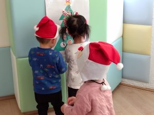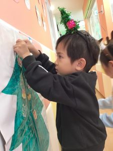 たくさん貼って、各クラスのツリーが完成しましたよ🌟