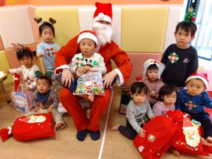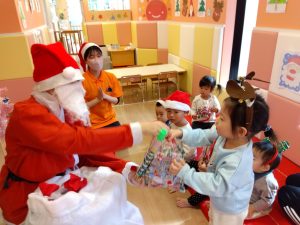 サンタさんが来てくれて、みんなびっくり👀