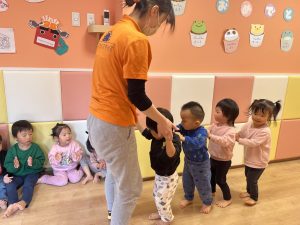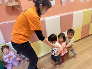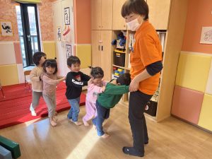 戸外に出てまずは保育者がお手本!