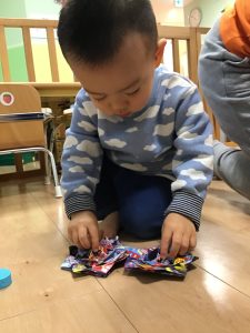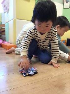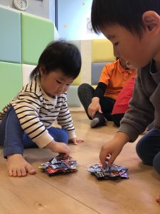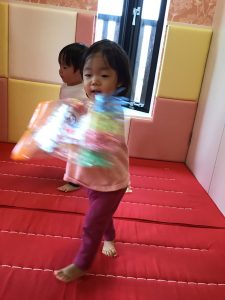 0歳児さんでも楽しめるビニール凧を作りましたよ♪
