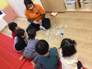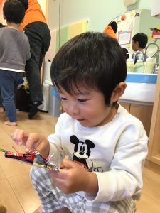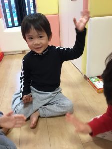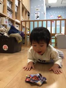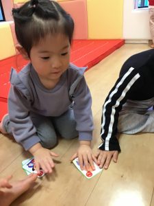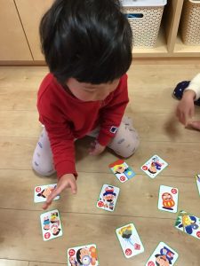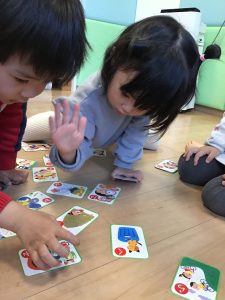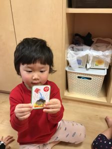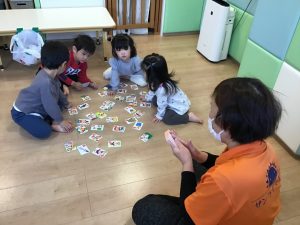 「はい!」と言ってカルタを取る姿がたくまい2歳児さん♪