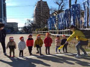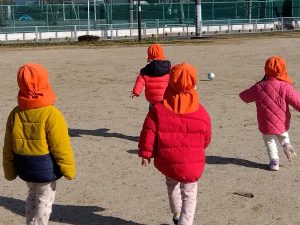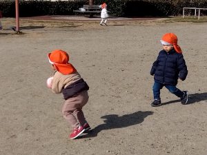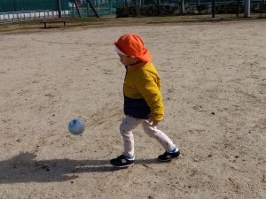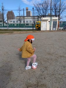 「待て待て〜」とボールを追いかけたり、投げたり。