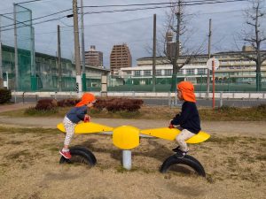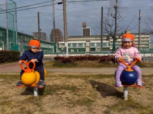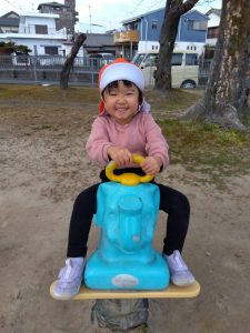 スプリング遊具は一人で乗れるようになった子が多く、自分から「よいしょ!」💓