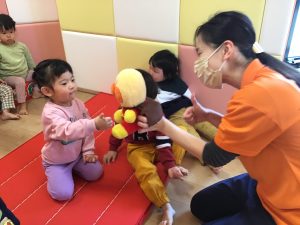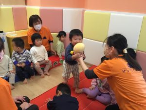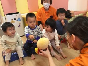 0歳児さんの時には、1.2歳児さんたちがみんなで答えてくれましたよ♪