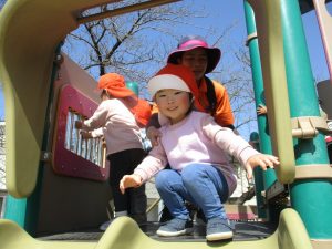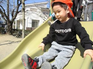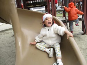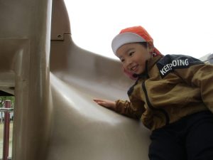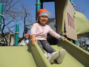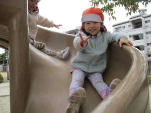 滑り台も遊具もちゃんと並んで順番できるよ![]()