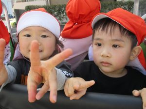 道行く人にも元気いっぱいのご挨拶ができる素直で可愛い2歳児さんたち![]()