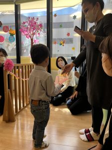 参道にお散歩に行くと「きれい」「かわいい💕」と言って見たり、花びらを拾って見ている子どもたちです。
