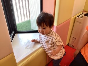 最近はつかまり立ちもやる気満々☺