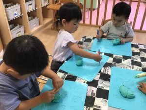 みんな粘土の感触に夢中です🤭