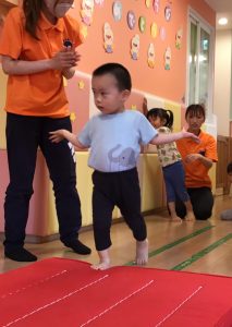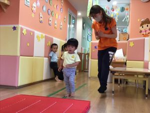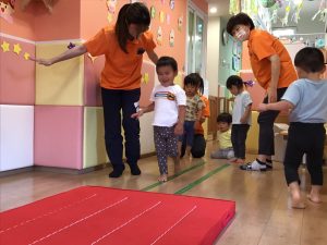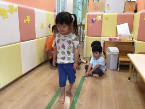 次は段階を一つ上げ、線の上を落ちないように歩きます🦵