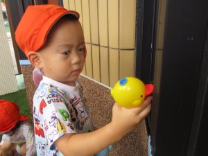 水遊びができる事を園児に伝えると