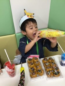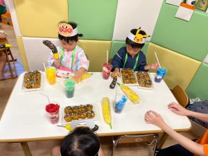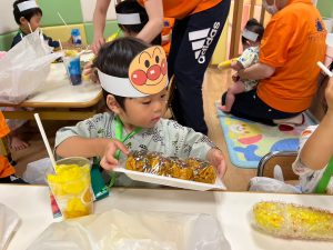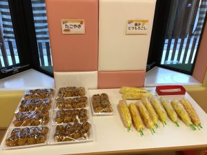 保育室を移動すると、部屋の中には美味しそうな屋台の出し物がたくさん!!