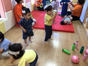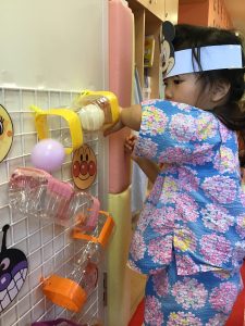 取れたヨーヨーに興味津々な子どもたち🧐
