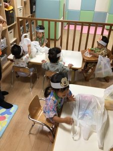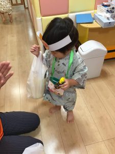 お買い物の袋をもらって、お買い物ごっこスタート!!🚩